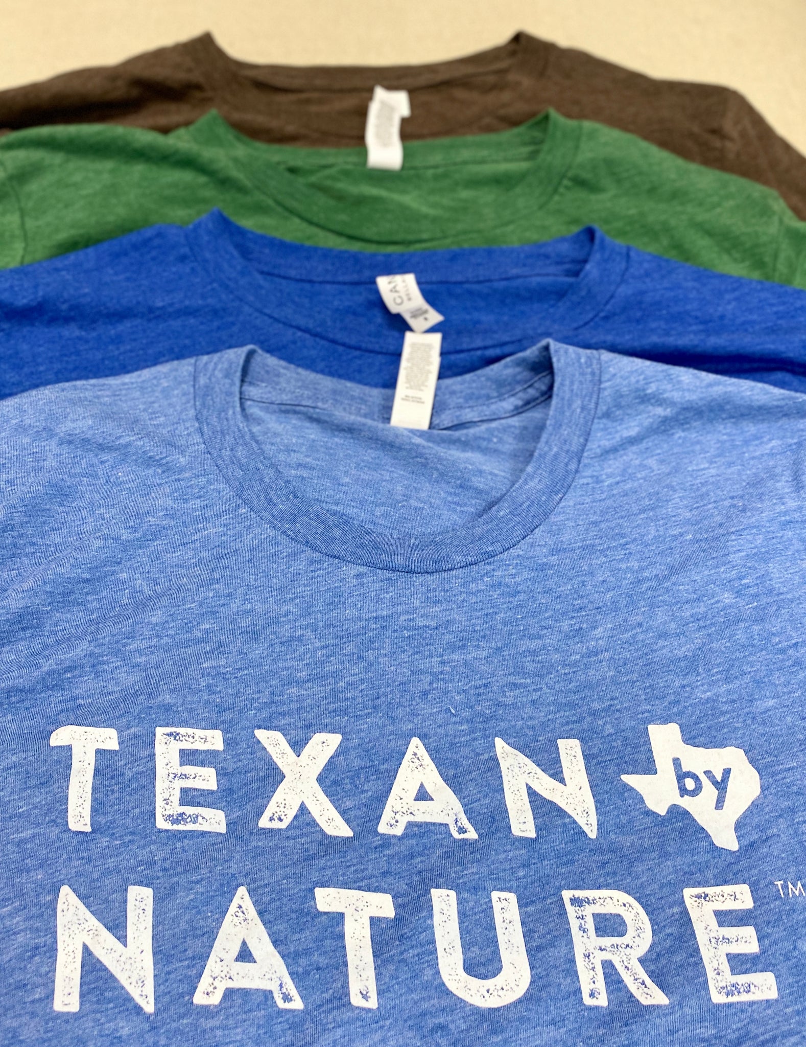 This Texan by Nature-branded shirt is the softest, eco-friendly tee you can wear all year long. This Outdoor Collection comes in Blue, Green, Dark Charcoal Gray, Light Gray, or Brown and features Texan by Nature's official logo printed in white on the front.